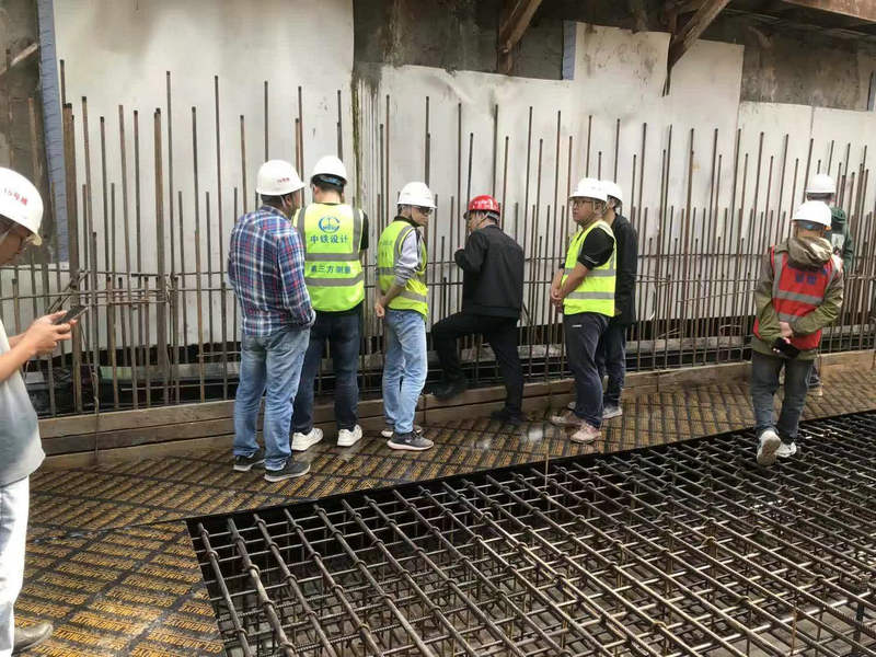 驗收小組首先集體踏勘了禮學路站2號出入口底板施工現(xiàn)場,對底板鋼筋、模板、混凝土、防水等分項工程內容進行現(xiàn)場核查驗收。