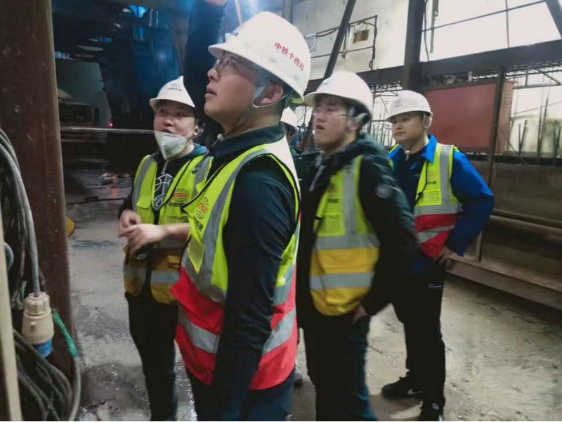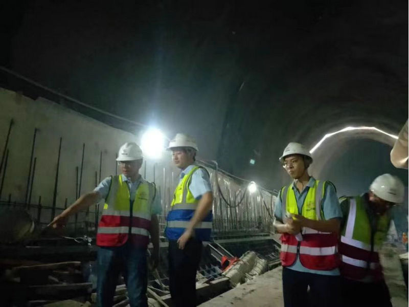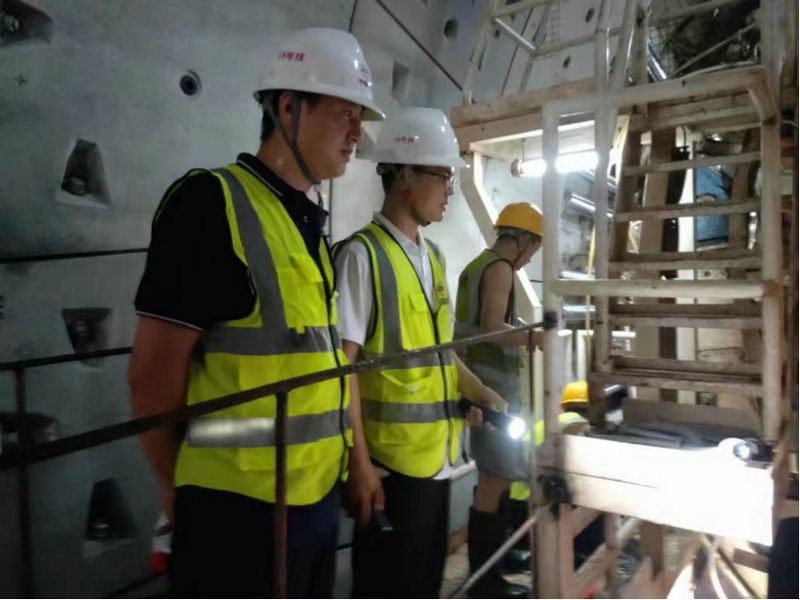 項目部總工李文慶、工程部長牛浩等深入盾構(gòu)施工現(xiàn)場進(jìn)行技術(shù)創(chuàng)新盯控