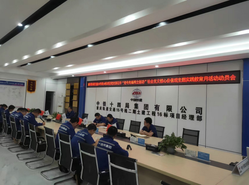 為全面貫徹學(xué)習(xí)習(xí)近平總書(shū)記文化思想,著力培育和踐行社會(huì)主義核心價(jià)值觀(guān),深入推進(jìn)社會(huì)主義精神文明建設(shè),中鐵建重慶軌道交通15號(hào)線(xiàn)二期總承包部16標(biāo)14局項(xiàng)目黨支部,充分利用會(huì)議動(dòng)員,營(yíng)造濃厚的宣傳氛圍,積極廣泛大力弘揚(yáng)社會(huì)主義核心價(jià)值觀(guān)正能量,為項(xiàng)目施工提供攻堅(jiān)克難的強(qiáng)大動(dòng)力。