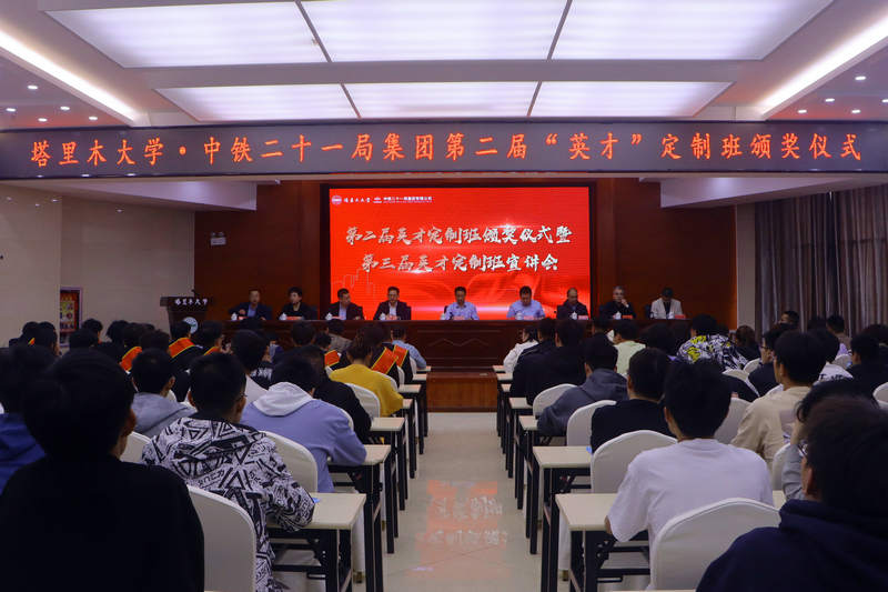 在頒獎(jiǎng)儀式上,校企雙方的代表分別致辭。中鐵二十一局招聘工作負(fù)責(zé)人表示,塔里木大學(xué)以“用胡楊精神育人、為興疆固邊服務(wù)”的辦學(xué)特色,近年來為中鐵二十一局輸送了一批批優(yōu)秀學(xué)子,連續(xù)舉辦三屆“英才”定制班,得到了學(xué)校的大力支持,對(duì)學(xué)校、老師和學(xué)生的認(rèn)可表示感謝。