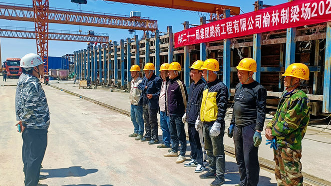 榆林制梁場位于陜西省榆林市橫山區(qū)白界鎮(zhèn)羊圈梁村,梁場占地44畝,拌合站占地18畝,梁場現(xiàn)有制梁臺座9個,其中32m臺座6個,24m和32m臺座3個,梁場最大生產能力60片/月,最大存梁能力180片。該梁場自2014年成立以來,強管理、重履約,保質量,同時深耕屬地發(fā)展,依托“榆林”“鄂爾多斯”雙屬地,滾動經營,奮勇爭先、嚴守安全質量,先后優(yōu)質高效完成榆橫鐵路煤化工專用線工程PJ-B標等施工任務,充分發(fā)揮中鐵二十一局路橋公司制、運、架、鋪的專業(yè)化優(yōu)勢,截至2023年底,相繼自主承攬T梁預制施工任務906片,贏得了市場認可,真正做到以干促攬拓市場,實現(xiàn)片區(qū)滾動發(fā)展。
