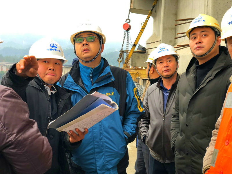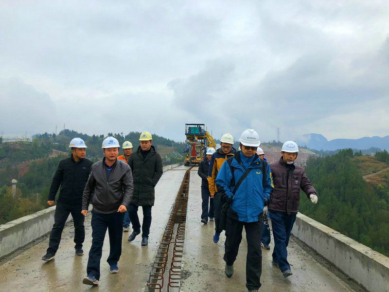 現(xiàn)場(chǎng)聽(tīng)取匯報(bào) 在黔張常項(xiàng)目鐵爐堡特大橋施工現(xiàn)場(chǎng),檢查組一行先后對(duì)橋面系施工作業(yè),架橋作業(yè)過(guò)程,現(xiàn)場(chǎng)檢查記錄和施工料具擺放及各項(xiàng)安全標(biāo)示標(biāo)牌設(shè)置等情況進(jìn)行了檢查,并聽(tīng)取了項(xiàng)目負(fù)責(zé)人對(duì)特大橋施工任務(wù)建設(shè)完成情況的匯報(bào)。隨后在有關(guān)人員的陪同下,檢查組對(duì)涪秀二線(xiàn)項(xiàng)目黔江鋪架基地、正陽(yáng)雙線(xiàn)大橋濕接縫施工、內(nèi)頁(yè)資料及黔江站懷化端已鋪線(xiàn)路進(jìn)行了查看。