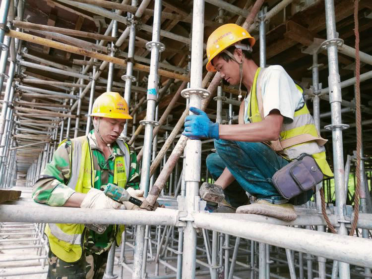 項(xiàng)目部員工在2號(hào)橋進(jìn)行模板支架拆除
