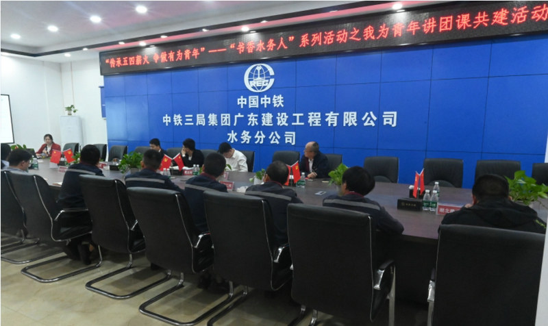 4月30日,天門團市委主辦,中鐵三局、天門日清生態(tài)治理有限公司承辦的“傳承五四薪火 爭做有為青年”——“書香水務(wù)人”系列活動之我為青年講團課共建活動在中鐵三局天門水污染治理和水資源保護利用項目部順利舉辦,天門團市委書記戴佳輝、副書記李翔,天門市黨校副校長郭瑤,中鐵三局廣東公司工會主席、副張經(jīng)理劉建忠以及中鐵三局、水電五局、十六化建等單位40余位青年參加活動。