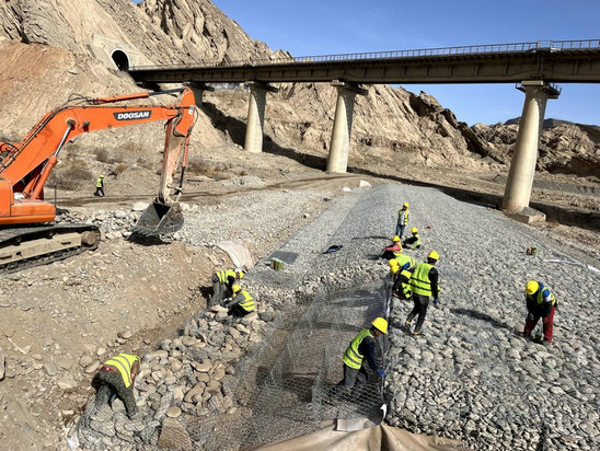 圖為:兵團(tuán)建工水電集團(tuán)八建公司庫車河除險加固項目部施工