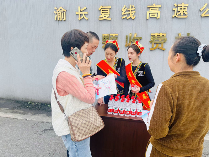 為擴(kuò)大渝長(zhǎng)復(fù)線高速的知名度和影響力,重慶兩江新區(qū)分公司(運(yùn)營(yíng)公司)渝長(zhǎng)復(fù)線高速運(yùn)營(yíng)中心在五一期間策劃了特色宣傳活動(dòng)。收費(fèi)站工作人員身著維吾爾族傳統(tǒng)服飾,向過(guò)往司乘人員發(fā)放宣傳單、礦泉水和快餐食品,展現(xiàn)了渝長(zhǎng)復(fù)線人的熱情與新疆特色。同時(shí),服務(wù)區(qū)志愿者們佩戴青年志愿者綬帶,與綜合執(zhí)法部門和高速交警一起開(kāi)展宣傳活動(dòng),向司乘人員詳細(xì)介紹了渝長(zhǎng)復(fù)線高速的路線特點(diǎn)、周邊景點(diǎn)旅游線路、行車安全知識(shí)以及服務(wù)承諾等內(nèi)容。