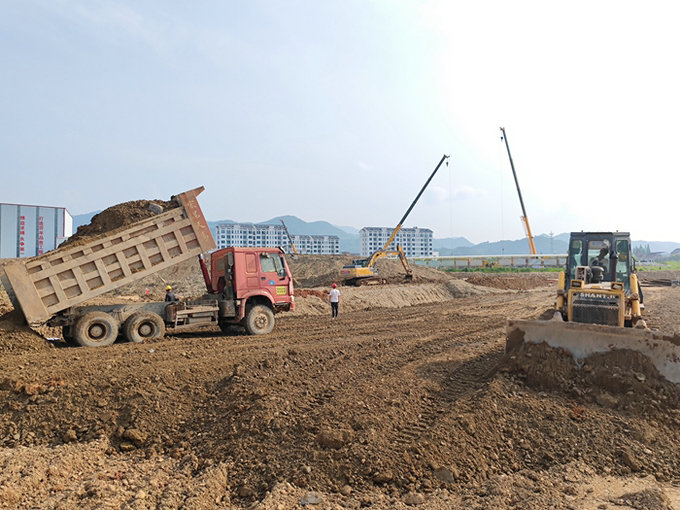 挖掘機(jī)、推土機(jī)、自卸車聯(lián)合作業(yè) 林茂輝攝