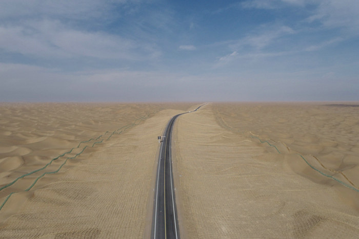 圖昆四標(biāo)沙漠公路.何衛(wèi)平攝據(jù)了解,圖昆沙漠公路全長(zhǎng)126.202公里。本合同段采用二級(jí)公路標(biāo)準(zhǔn)建設(shè),路線全長(zhǎng)55.845km,設(shè)計(jì)時(shí)速為 80km/h,本工程造價(jià)2.96億元,這個(gè)項(xiàng)目技術(shù)標(biāo)準(zhǔn)高,施工難度大,大大小小的沙包有500多個(gè),其中最高的沙包18.3米,最低的沙坑16.4米。