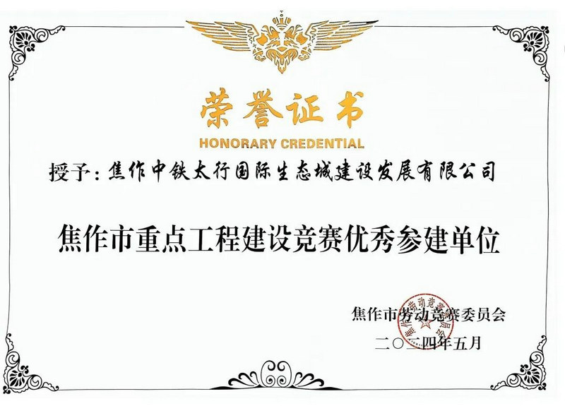 近日,焦作生態(tài)城公司獲得了“2023年度焦作市重點(diǎn)工程建設(shè)競賽優(yōu)秀參建單位”榮譽(yù),為樹立企業(yè)外部形象、推動中鐵中產(chǎn)置業(yè)公司高質(zhì)量發(fā)展做出了積極貢獻(xiàn)。