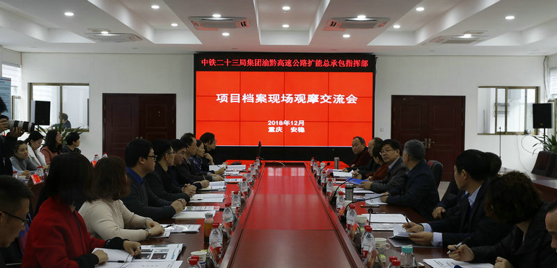 12月14日,中鐵二十三局集團(tuán)公司檔案管理現(xiàn)場觀摩交流會在中鐵二十三局六公司渝黔項(xiàng)目順利召開。中鐵二十三局集團(tuán)公司董事會秘書、綜合辦公室主任李文杰,副主任高誼穎,中鐵二十三局六公司黨委副書記、紀(jì)委書記武應(yīng)軍,副總經(jīng)理兼渝黔指揮部指揮長楊建明以及中鐵二十三局集團(tuán)公司工程部等相關(guān)業(yè)務(wù)部門、中鐵二十三局集團(tuán)公司所屬各子公司檔案管理人員等40余人參加了此次觀摩研討會。重慶鐵發(fā)建新公司黨委副書記、紀(jì)委書記沈北林應(yīng)邀參加了此次活動。