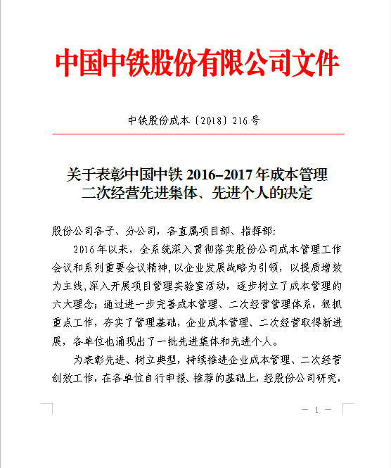 近日,中國中鐵股份有限公司下發(fā)《關(guān)于表彰中國中鐵2016-2017年成本管理二次經(jīng)營先進(jìn)集體、先進(jìn)個(gè)人的決定》通知,中鐵武漢電氣化局廣州分公公司湛江東海島項(xiàng)目部榮獲“中國中鐵2016-2017年二次經(jīng)營創(chuàng)效優(yōu)秀項(xiàng)目部”稱號(hào)。