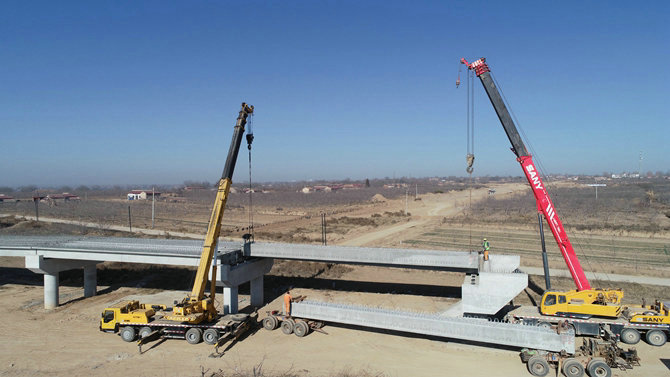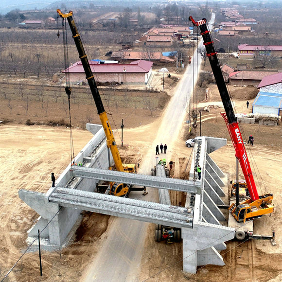 冬季的西北,夾雜著風(fēng)沙的寒風(fēng)猖獗的吹著,但甜永TY13標(biāo)施工現(xiàn)場(chǎng)卻呈現(xiàn)出一片熱火朝天的忙碌景象,現(xiàn)場(chǎng)技術(shù)管理人員扛著儀器、喊著話,奔跑在各個(gè)作業(yè)點(diǎn);現(xiàn)場(chǎng)施工人員持著工具、貓著身,穿梭于腳手架的空當(dāng);樁基、墩柱、架梁、箱梁預(yù)制等各施工作業(yè)面有條不紊地進(jìn)行著。11月11日,甜永高速TY13標(biāo)K187+340車行天橋架梁順利合龍,為該標(biāo)段的冬季施工開出了好彩頭。12月14日,甜永項(xiàng)目部AK0+450高樓互通A匝道通道橋梁板架設(shè)開始,拉開了甜永高速TY13標(biāo)段高樓互通區(qū)橋梁施工序幕,這是甜永項(xiàng)目部繼K187+340車行天橋后第二座進(jìn)行架梁施工的橋梁。高樓互通立交是為解決高樓塬、定祥塬沿線鄉(xiāng)鎮(zhèn)車輛出入高速,國(guó)道309南北向交通流快速轉(zhuǎn)換而設(shè)置,該立交對(duì)于局部路網(wǎng)交通流的合理分布以及溝通沿線城鎮(zhèn),充分吸引交通量,發(fā)揮道路最佳效益,促進(jìn)沿線區(qū)域經(jīng)濟(jì)發(fā)展十分重要。12月15日,甜永項(xiàng)目部MK189+480車行天橋橋梁板架設(shè)正式開始,這是甜永項(xiàng)目部第三座進(jìn)行架梁施工的橋梁。這三座橋梁的架設(shè)完成標(biāo)志著甜永TY13標(biāo)施工重要節(jié)點(diǎn)及冬季施工節(jié)點(diǎn)的順利兌現(xiàn)。