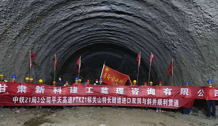 平天高速PTKZ1標(biāo)關(guān)山特長隧道進口雙洞與斜井順利貫通
