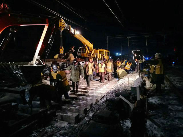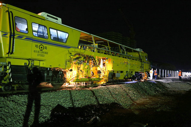 時間能磨平人的棱角,也能磨滅阻礙。隨著施工進度的不斷推進,哈佳項目部迎來了8至12線關(guān)鍵的工期節(jié)點,2017年4月28日,近600名作業(yè)人員、近40臺大小設(shè)備一齊沖進預定線路,人工抬軌的號子聲、鐵鍬砟石的碰撞聲、機械設(shè)備的轟鳴聲此起彼伏。斷軌飛濺的鋼花、作業(yè)工人衣服上的熒光帶、防護員手里的探照燈在夜空中照亮了線路,在爭分奪秒的緊張搶戰(zhàn)氣息中平添了一抹建筑工人獨有的韻味,經(jīng)過15小時30分的激烈鏖戰(zhàn),佳木斯站場新建8至12線工程順利完成轉(zhuǎn)線施工任務(wù)。時間悄悄地走,佳木斯站場全線開通時間也逐漸的接近。6—7線于2017年11月30日順利開通,2線于2018年12月16日順利開通。