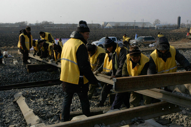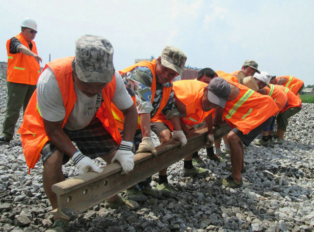 齊心協(xié)力抬軌枕