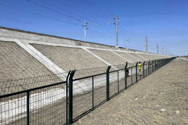 該項目主要剩余工程為沿線防護(hù)柵欄,主要用途是阻止人畜進(jìn)入鐵路線路,防止人身事故發(fā)生,保證行車安全,提高鐵路運輸綜合效益。在防護(hù)柵欄和沖刷防護(hù)的施工組織過程中,項目部高度重視“首件施工”,作為高質(zhì)量施工生產(chǎn)的“第一顆紐扣”。為有效控制和提高施工質(zhì)量,技術(shù)人員分析施工過程中各種技術(shù)參數(shù)、總結(jié)施工工藝、操作要點,對技術(shù)和質(zhì)量指標(biāo)進(jìn)行綜合評價并詳細(xì)記錄存檔,為指導(dǎo)防護(hù)柵欄施工提供參考依據(jù)。同時,嚴(yán)格遵照施工規(guī)范的結(jié)構(gòu)物尺寸、施工工藝進(jìn)行技術(shù)質(zhì)量交底,審核方案圖紙,項目部還召開技術(shù)交流會,為首件工程的各分項工程的施工確定最佳工藝,理清脈絡(luò)從而確定現(xiàn)場投入的機械設(shè)備、人員、材料、儀器以保證工程需要。施工過程中,技術(shù)人員對防護(hù)柵欄的控制點位進(jìn)行精準(zhǔn)放樣,多次復(fù)測,確保點位精確,對首件工程施工的尺寸監(jiān)測、檢查,記錄質(zhì)量狀況、對特殊地段(遇排水溝、涵洞等)工藝細(xì)節(jié)做出調(diào)整,找出施工中的不足并加以改正,編制施工總結(jié)進(jìn)一步完善全套施工組織。