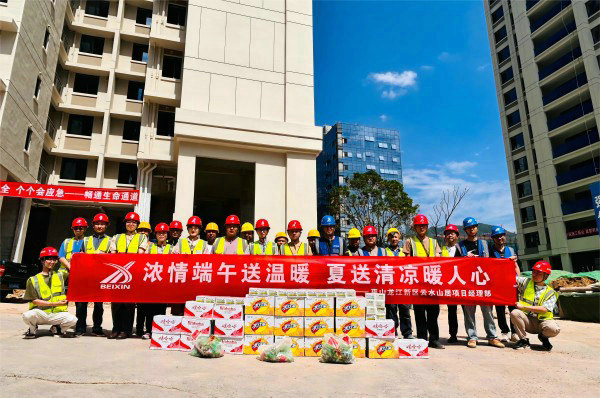 巫山訊(通訊員 楊文芹)粽香沁人心,濃濃端午情。炎夏送清涼,情系一線,為切實(shí)做好節(jié)日慰問及一線工人夏季防暑降溫工作,關(guān)心關(guān)愛一線工友健康安全,6月6日,北新融建公司巫山龍江新區(qū)云水山居項(xiàng)目精心組織開展“濃情端午送溫暖 夏送清涼暖人心”慰問活動(dòng),為一線工友送去一絲清涼,表達(dá)了節(jié)日的問候。連日來,巫山縣氣溫逐漸攀升,云水山居項(xiàng)目的建設(shè)者們鏖戰(zhàn)正酣,冒著高溫天氣堅(jiān)守崗位,揮汗奮戰(zhàn),施工現(xiàn)場(chǎng)呈現(xiàn)一片熱火朝天的景象。