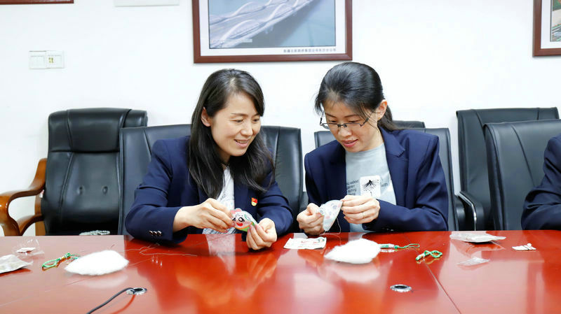 圖為北新路橋集團長沙分公司機關(guān)黨支部開展共繡“廉潔香囊”活動 盧仕磊 攝