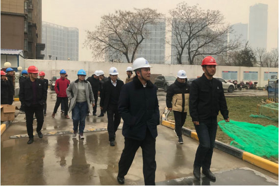 王勇在現(xiàn)場(chǎng)查看了施工進(jìn)度,聽(tīng)取了項(xiàng)目負(fù)責(zé)人郗建朋對(duì)目前工程進(jìn)度的匯報(bào)后,仔細(xì)詢(xún)問(wèn)了解施工質(zhì)量、施工難點(diǎn)及安全工作的開(kāi)展等事宜。
