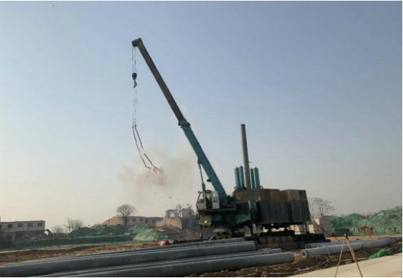 首根靜壓管樁施工現(xiàn)場(chǎng)