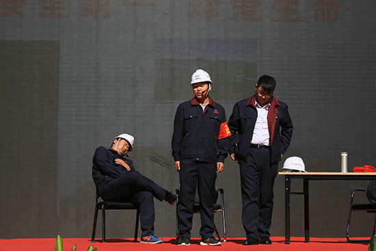 圖四、福廈鐵路項(xiàng)目部表演小品《安全帽》;