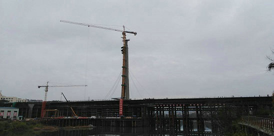 上杭潭頭大橋工程是上杭縣乃至龍巖市第一座斜拉橋,大橋設(shè)計(jì)為空間雙索面混合梁獨(dú)塔斜拉橋,橋梁全長(zhǎng)323米,包括主橋及西引橋,主橋四跨,最大跨徑138米。大橋主塔已經(jīng)封頂,斜拉索也已經(jīng)開(kāi)始施工。
