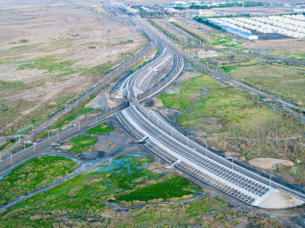 近日,由中鐵二十一局承建的蘭新鐵路精阿增建二線工程中的重要組成部分——連接精河站與精霍線的疏解線正式開通。