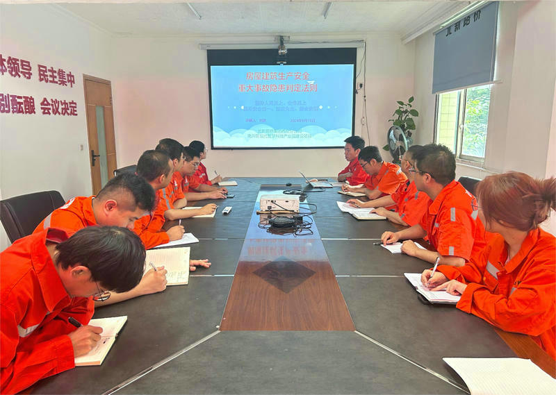 為提升項(xiàng)目管理人員安全生產(chǎn)標(biāo)準(zhǔn)化管理水平,增強(qiáng)重大事故隱患判定能力和防控能力,壓緊壓實(shí)關(guān)鍵崗位人員責(zé)任,6月18日,北新路橋集團(tuán)西安分公司南川現(xiàn)代智慧科技產(chǎn)業(yè)園建設(shè)項(xiàng)目開展房屋建筑生產(chǎn)安全重大事故隱患判定專題培訓(xùn)。