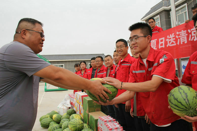 活動中,北新巖土公司黨委書記、董事長田秋林同志深入基層走訪慰問,向一線職工送去綠豆、冰糖、西瓜等物品,聽取職工心聲并進行親切交談,指導(dǎo)和督促項目落實各項防暑降溫措施,把公司黨委和工會的關(guān)懷送到奮戰(zhàn)在基層一線的廣大干部職工中。