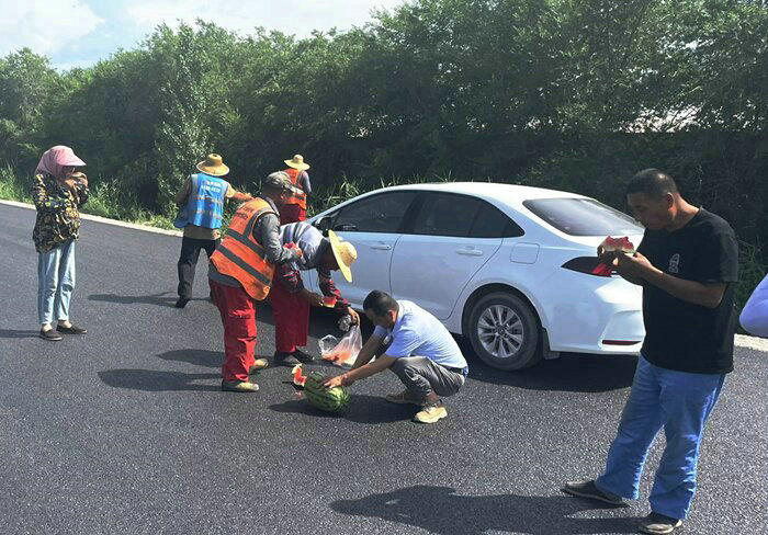 G30二標項目經(jīng)理胡經(jīng)理親赴施工現(xiàn)場,為工人們送去了清涼的西瓜和礦泉水,讓他們在炎炎夏日中感受到一份別樣的溫情。“大家辛苦了!天氣這么熱,一定要注意防暑降溫,保證身體健康。”胡經(jīng)理一邊將西瓜遞到工人們手中,一邊關(guān)切地囑咐道。他的聲音溫暖而有力,猶如一陣夏日的清風(fēng),瞬間驅(qū)散了工人們心頭的暑氣。在現(xiàn)場,施工人員們紛紛表示感受到了項目部的關(guān)心和溫暖,表示將繼續(xù)保持高昂的工作熱情,為項目的順利完成貢獻自己的力量。