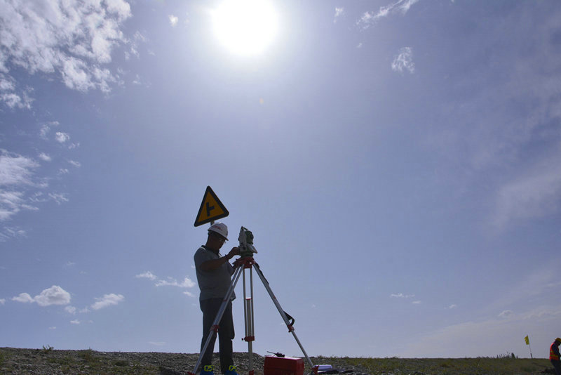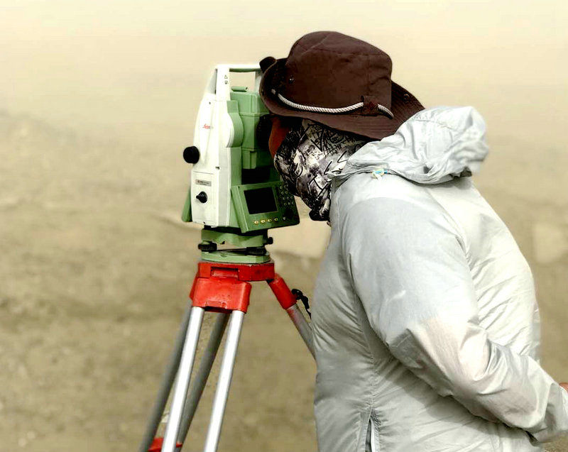 都說測量是工程之眼,測量人員是工程施工的先鋒官。身為一個測量員,每天扛著沉重儀器進行作業(yè),早已成為他們鍛煉身體的一項運動。與內(nèi)地測量員不同的是,身在新疆和田地區(qū)喀葉墨項目的測量員不僅要承受儀器的厚實分量,還得抵擋得住高溫、強紫外線和風(fēng)沙天氣的侵害。然而也正是這樣的天氣才讓他們強大,更在風(fēng)沙中淬煉了一雙火眼金睛。