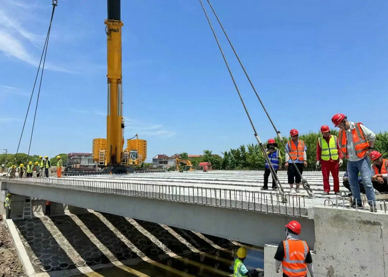 鐵路工程建設網(wǎng)訊(通訊員張聰聰)近日,隨著最后一片長23米,重45噸的空心板梁精準落位,中鐵十五局上海Y4路項目蘇橋河橋左幅梁板安裝順利完成,為項目后續(xù)便道導改及右幅橋梁施工創(chuàng)造了有利條件,有效推進了項目施工進展。