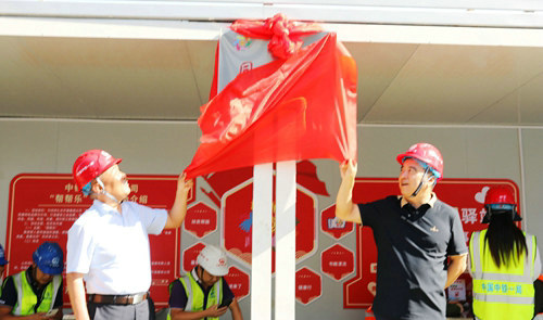 中鐵一局工會(huì)副主席張國強(qiáng),建安公司工會(huì)主席、副總經(jīng)理?xiàng)顤|雷共同為“同心驛站”揭牌。