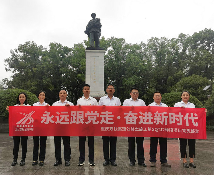 為迎接“七一”建黨節(jié),慶祝中國共產(chǎn)黨成立103周年,6月28日,北新投資公司所屬重慶雙錢高速公路土建施工SQTJ2標段項目黨支部組織黨員和入黨積極分子赴銅梁區(qū)邱少云烈士事跡陳列館開展主題黨日活動,學習英烈精神,接受愛國主義教育。