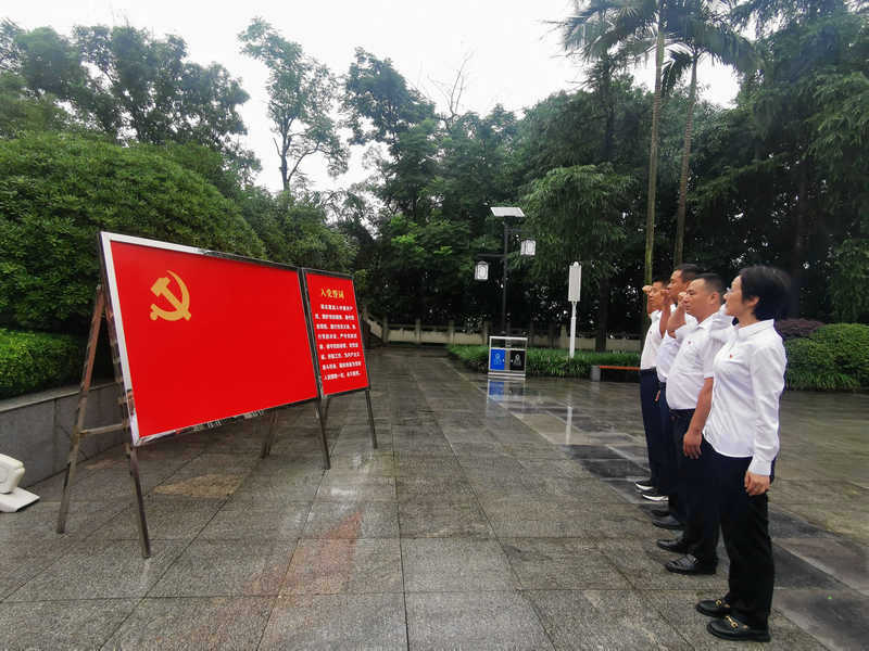 在邱少云烈士紀念碑前,全體同志向烈士塑像鞠躬默哀致敬,衷心表達對革命先烈的無盡哀思和緬懷之情。黨員同志面向黨旗,舉起右手、緊握拳頭,重溫入黨誓詞,一名句句鏗鏘有力的誓言又一次激勵和鞭策著每一名同志。