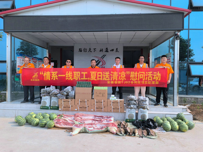自進(jìn)入六月以來,宿州地區(qū)持續(xù)高溫,連續(xù)多日平均氣溫高達(dá)35度左右,持續(xù)的高溫天氣給奮斗在一線的工人帶來了嚴(yán)峻的考驗(yàn),為切實(shí)做好“夏日送清涼”慰問活動,項(xiàng)目部為一線工人準(zhǔn)備了1000盒藿香正氣液、1000盒風(fēng)油精、500盒十滴水、500袋仁丹、2000斤西瓜以及花露水、涼茶等防暑藥品和物資,對高溫天氣仍然奮戰(zhàn)在施工現(xiàn)場的工人表示衷心的感謝,并叮囑大家要注意勞逸結(jié)合、防暑降溫、保障身體健康。工人們接到項(xiàng)目部送來的慰問品紛紛表示,在強(qiáng)烈的陽光照射下,雖然感到悶熱難受,但感受到了關(guān)懷和關(guān)愛,并保證一定會克服酷暑高溫,堅(jiān)守崗位,盡職盡責(zé),積極投身于施工中。