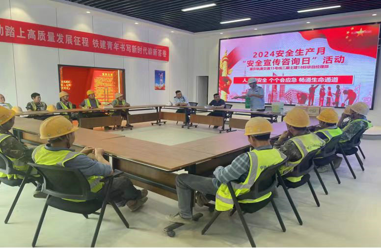 中鐵建重慶軌道交通15號線二期總承包部按照上級關于開展 2024 年全國“安全生產(chǎn)月”活動的部署要求,緊緊圍繞“人人講安全、個個會應急--暢通生命通道”的活動主題,采取多種形式,扎實開展“安全生產(chǎn)月”活動,促進了項目安全生產(chǎn)管理水平穩(wěn)步提升,取得了較好成效,為下一步的安全生產(chǎn)打下了堅實的基礎。在活動中他們的主要做法是: