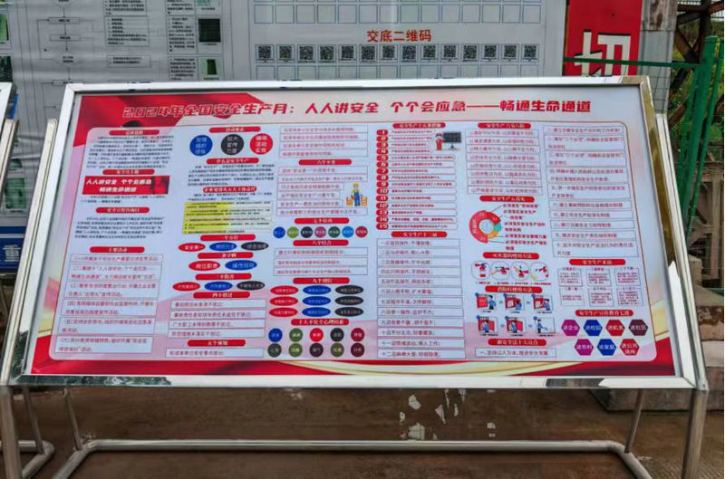 項目自上而下廣泛深入的開展宣傳、教育工作。在人員經(jīng)過的通道處、會議室、施工現(xiàn)場及辦公區(qū)和工人生活區(qū)顯著位置,設置“安全生產(chǎn)月”專題展板及掛設各類安全宣傳牌,讓全體作業(yè)人員感受到“安全生產(chǎn)月”濃厚的文化氛圍。用輿論導向激發(fā)項目部職工及施工人員積極參與熱情,讓他們牢固樹立“安全第一”的思想,把規(guī)范自己的行為、注重安全生產(chǎn)演變?yōu)樽杂X活動。讓全體作業(yè)人員感受到“安全生產(chǎn)月”濃厚的文化氛圍,拉開了“安全生產(chǎn)月”活動的序幕。