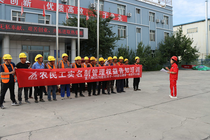 為進(jìn)一步構(gòu)建和諧的勞動關(guān)系,更好的維護(hù)項目部和農(nóng)民工的合法權(quán)益,近日,北新路橋集團(tuán)兵團(tuán)交建公司第八師G576—標(biāo)項目對新進(jìn)場農(nóng)民工開展維權(quán)告知培訓(xùn)活動,累計參加培訓(xùn)的農(nóng)民工達(dá)98人次。