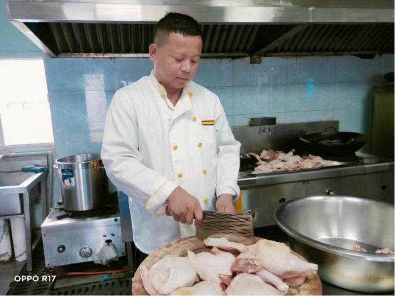 重慶的毛血旺、酸菜魚等名菜,山東的白斬雞、木須肉等名菜,大廚田慶雷可謂行家里手,他烹飪的各類炒菜、燉菜、蒸菜等,魯菜有魯菜的色味俱佳、咸淡適度,川菜有川菜的麻辣酸甜、解饞爽口,南北大鍋菜炒到南北方員工皆大歡喜的口感,員工餐廳頓頓就餐滿員的笑容,就是對廚師最好的點(diǎn)贊。