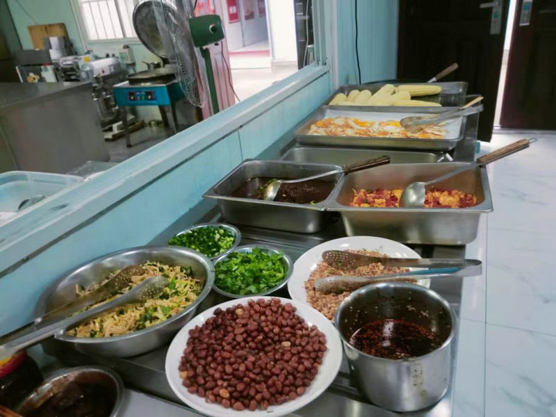 不逢年過節(jié),在食堂也能吃上在家一樣的自制水餃、餛飩、煎包、玉米糕、油餅、油條、包子、花卷等可口的美食了;不進(jìn)餐館也能喝上豆腐腦、豆?jié){、胡辣湯、八寶粥等舒心的美味了。