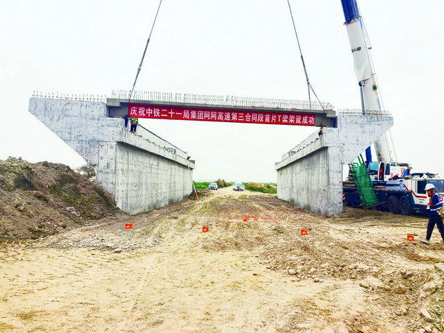 7月20日,在中鐵二十一局集團承建的阿克蘇至阿拉爾高速公路項目K115+588通道橋施工現(xiàn)場,一片預制T梁在汽車起重機的吊運下平穩(wěn)架設(shè)就位,標志著阿阿高速全線首片T梁成功架設(shè),是繼全線首榀箱梁架設(shè)后的又一突破性進展。
