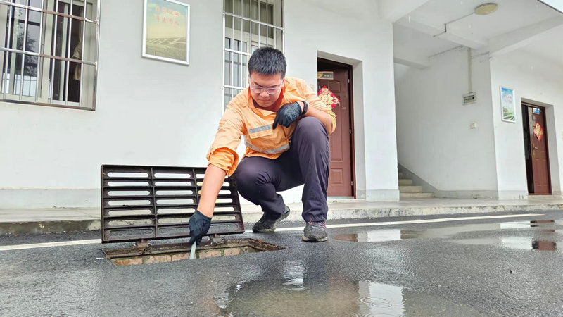 2024年7月27日,王寨示范隊(duì)職工張力正在清理下水道雜物。