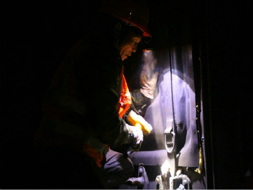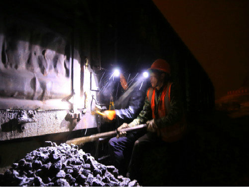 當(dāng)筆者走近卸砟現(xiàn)場,負責(zé)該項施工的王迎成和4名施工人員正進行著班前會議,待所有安全注意事項傳達完畢后,大家馬上分頭行動了。