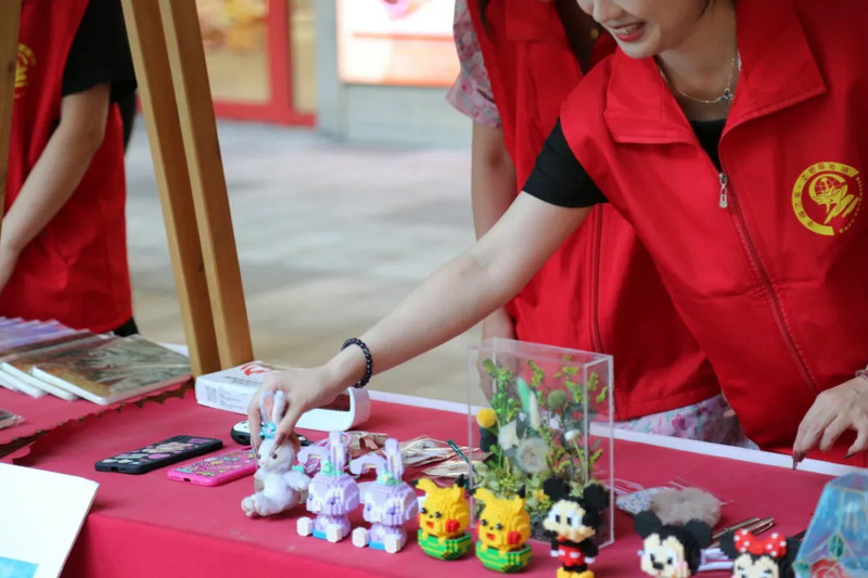 活動(dòng)現(xiàn)場(chǎng)設(shè)置了12個(gè)攤位,籌集了來(lái)自公益組織的書籍雜志、手工藝品等義賣物品。身穿紅馬甲的中鐵中產(chǎn)置業(yè)公司青年志愿者和新東方學(xué)生化身為攤位攤主,熱情地向往來(lái)的市民游客推銷義賣物品。除了義賣活動(dòng)外,新東方學(xué)生還在中鐵·泰和里街區(qū)主舞臺(tái)表演了精彩的節(jié)目演出,吸引了大量市民游客的目光。