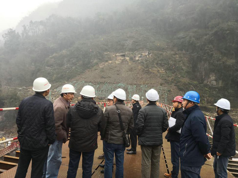 與會專家首先對泰山廟隧道現(xiàn)場實際情況進行了詳細的踏勘和研討,并根據(jù)設(shè)計院對泰山廟隧道進口地形、地貌、地質(zhì)條件等情況的補充勘察資料,對泰山廟隧道進口周邊山體和地質(zhì)條件情況進行了進一步了解和確認。并聽取了施工方案情況,方案內(nèi)容主要包括了隧道洞口設(shè)計調(diào)整后的工程概況、主要特點、施工重難點、資源組織配置、便道便橋施工方案、水渠和錯落體的防護、洞口危巖體清除、路基和明洞的開挖方法、洞口邊仰坡防護、安全防護措施和應(yīng)急救援預(yù)案等內(nèi)容,并針對泰山廟隧道洞口安全進洞的方案進行詳細說明。