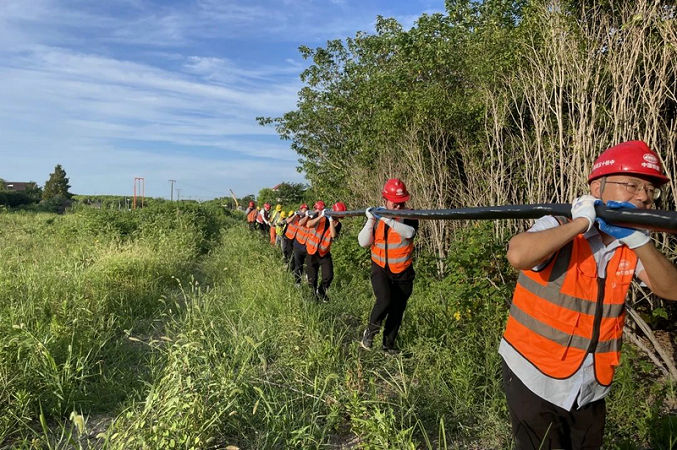 男職工們服從指揮,按指定線路各就各位、分工明確,不怕苦、不怕累。隨著現(xiàn)場“一二三走”的口號響起,大家擰成一股繩、匯成一股勁,在齊心合力奮戰(zhàn)了6個小時后終于完成任務,將現(xiàn)場電纜安全順利拉到位。