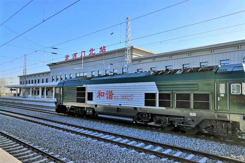 圖一、第一列機(jī)車駛過(guò)高阜錦鐵路清河門北站