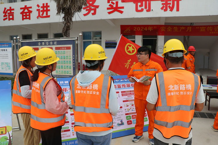 安徽宿固4標(biāo)項目青年突擊隊圍繞工程項目建設(shè),立足崗位積極投身安全生產(chǎn)工作,組織開展“安全生產(chǎn)大家談”“班前會”“以案說法”等交流學(xué)習(xí)活動,為一線職工和工人普及安全生產(chǎn)知識,并積極參與全線安全巡查活動,及時發(fā)現(xiàn)并消除安全隱患,為生產(chǎn)建設(shè)提供堅實的安全保障。安全生產(chǎn)月期間,通過設(shè)立咨詢臺、擺放宣傳展板、發(fā)放宣傳手冊傳單等方式,積極開展“6·16”安全咨詢?nèi)栈顒樱槍Υ蠹谊P(guān)心的安全生產(chǎn)、緊急情況逃生通道等問題,運(yùn)用事故案例分析,面對面進(jìn)行細(xì)致解答,向大家普及應(yīng)急知識,提升安全技能,把安全生產(chǎn)與日常安全知識切實送到一線干部職工心中。