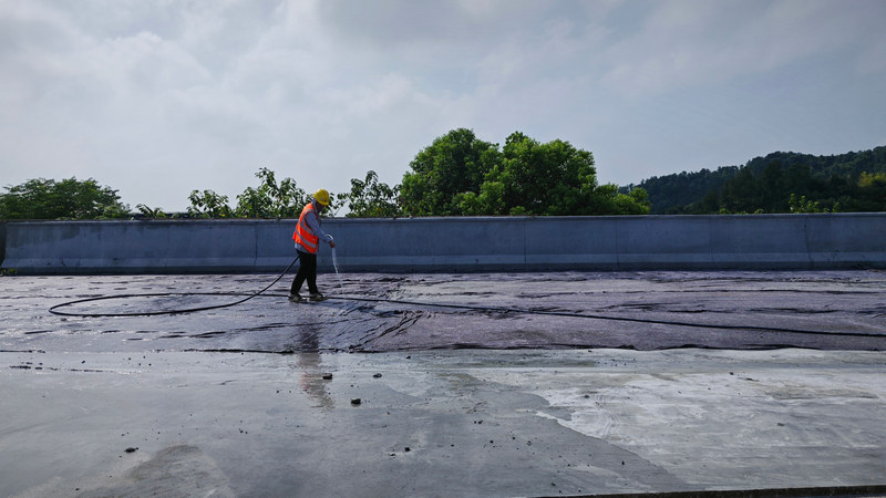 滬昆高速梨東改擴(kuò)建B1標(biāo)項目部建筑工人正在灑水養(yǎng)護(hù)